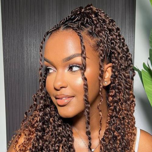Elles se caractérisent par l’ajout de mèches ondulées ou bouclées laissées volontairement libres entre les tresses, créant un effet flou, naturel et ultra stylé.